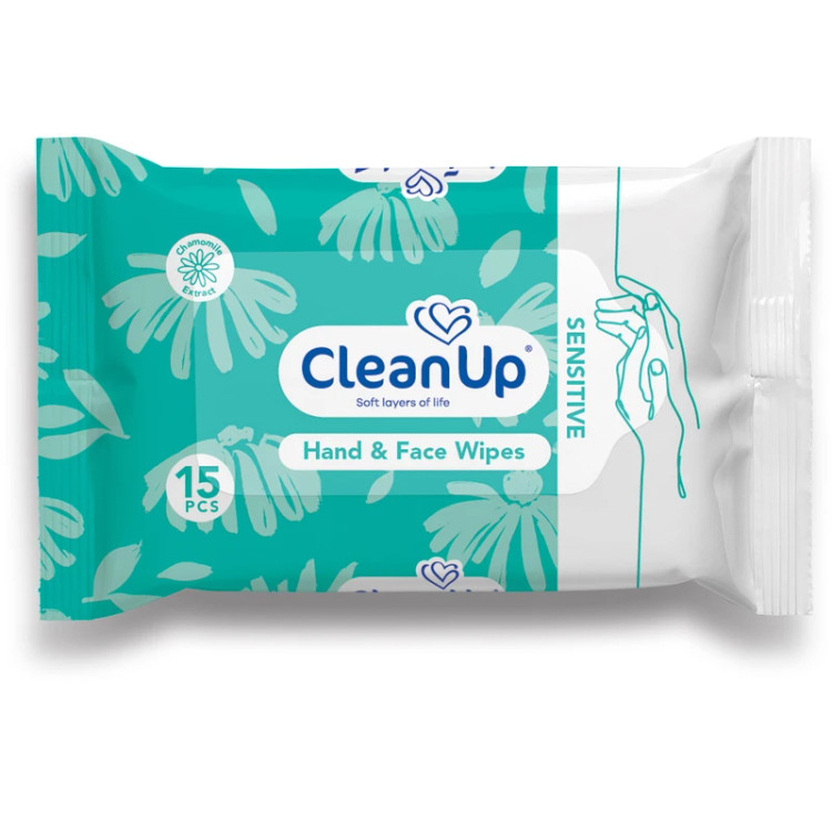 دستمال مرطوب پاک کننده دست و صورت کلین آپ مدل Sensitive بسته 15 عددی