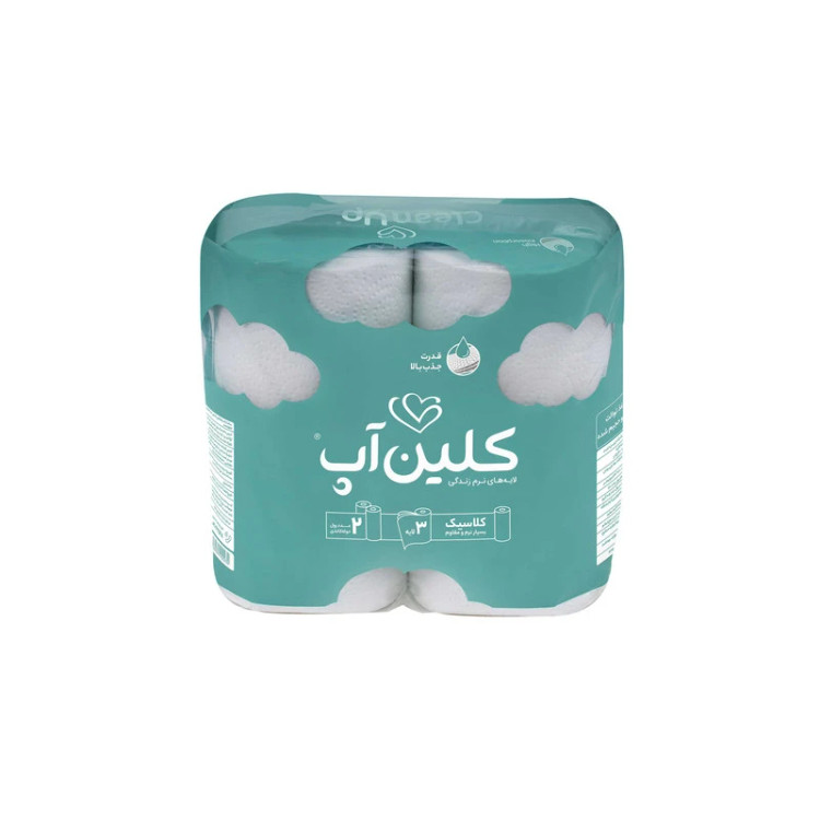 دستمال کاغذي حوله اي آشپزخانه سه لايه کلين آپ، ۳ لایه در بسته های ۲ رولی تولیدشده و حدودا ۱۰۵ ورق در هر رول است. از انتشار انواع بیماری های واگیردار جلو گیری می کند. قدرت جذب بالا، لایههای منسجم و مقاوم قابل استفاده در آشپزخانه می باشد.