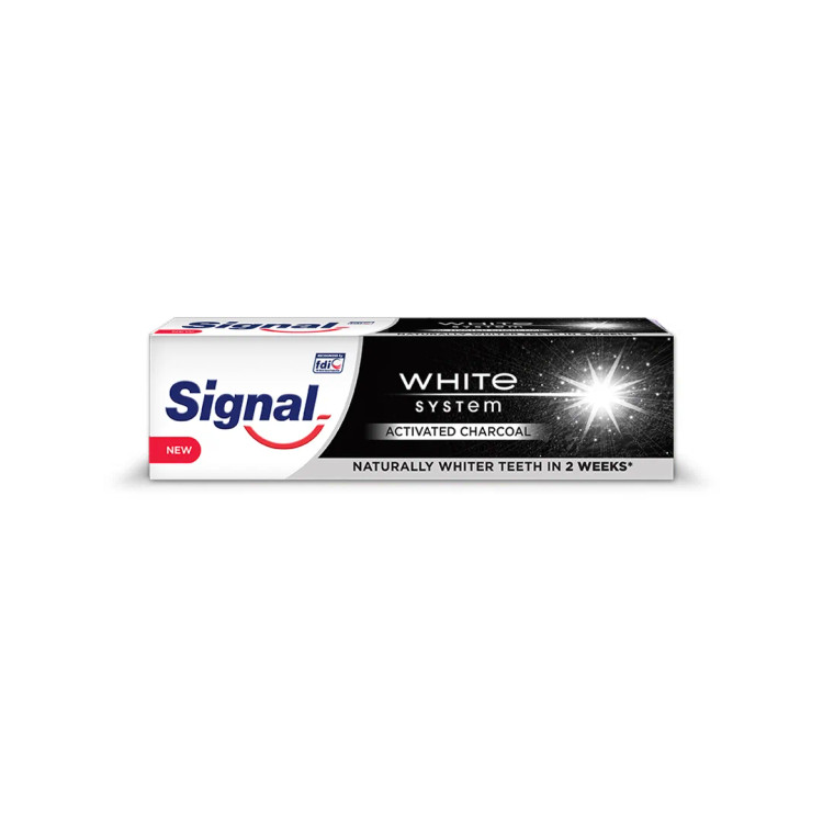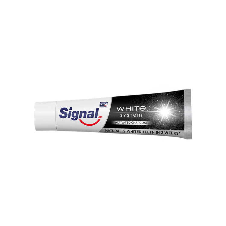کربنات کلسیم نوعی مادهی معدنی طبیعی و استثنائی است و در در ترکیبات خمیر دندان وایت سیستم مشکی استفاده میشود. کربنات کلسیم نوعی ساینده است که لکهها را با ملایمت و بدون آسیب به مینا در 2 هفته از بین میبرد و سفیدی طبیعی دندان را به ارمغان میآورد. ذرات ریز کربن فعال، فرآیند سفیدکنندگی خمیر دندان سیگنال Charcoal را قدرت میبخشد و دندانها را درخشان میکند.