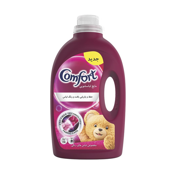 مایع لباسشویی کامفورت مخصوص لباسهای رنگی، شویندهای چند منظوره و قوی است. یک لباس تمیز باید بدون لکه، درخشان و با اتوکشی آسان باشد. پیشتر برای هرکدام از این ویژگیها نیاز به استفاده از محصولی مستقل بود. تا قبل از تولید مایع ماشین لباسشویی، تمیزی لباس را پودرها و اتوکشی و رایحهی خوش را نرمکنندهها ایجاد میکردند. کامفورت رنگی دارای تکنولوژی بازیابی رنگ است و از رنگ پارچه محافظت میکند.