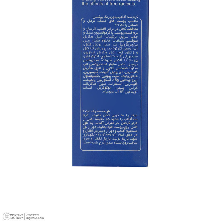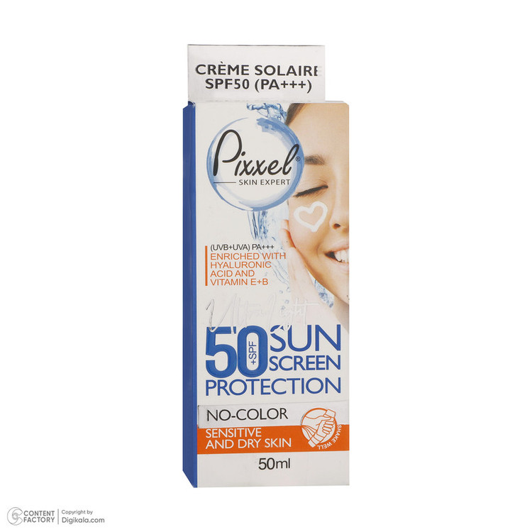 از کرم ضدآفتاب بی رنگ پیکسل SPF 50 مدل Sensitive میتوانید به صورت روزانه به عنوان زیر پوش آن استفاده کنید. حضور SPF 50 در این محصول باعث میشود که پوست شما به خوبی محافظت شود. این کرم دارای بافتی سبک است و بنابراین پس از استفاده از آن، احساس سنگینی نخواهید داشت. ضد آفتاب پیکسل دارای ویژگیهای ضد التهابی و ضد حساسیت است که افراد دارای پوست حساس میتوانند به راحتی از آن استفاده کنند. این کرم ضد آفتاب برای افراد با پوست خشک بسیار مناسب بوده و خشکی یا تنش بر روی پوست آنها را تسکین میدهد. ضد آفتاب پیکسل برای افراد با پوست خشک و حساس ایدهآل است و از پوست آنها در برابر اشعههای مضر خورشید محافظت میکند. این کرم ضد آفتاب بدون رنگ پیکسل از پوست شما در برابر اشعههای مضر خورشید مراقبت کرده و از بروز مشکلاتی مانند لکها، تیرگیها، چین و چروک صورت و ... جلوگیری میکند. همچنین میتوانید از این کرم به عنوان زیر پوش آرایشی نیز استفاده نمایید.