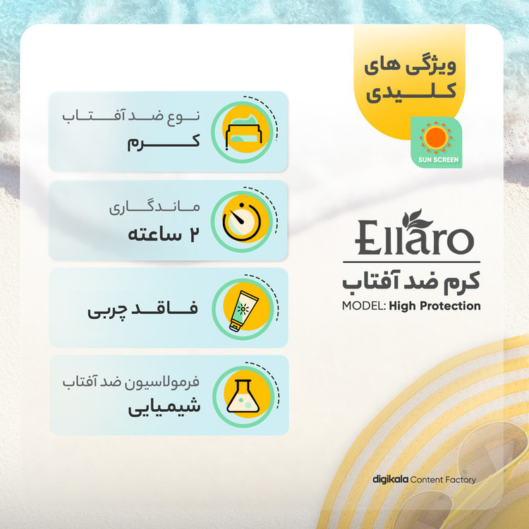 ضد آب , محافظت کننده در برابر اشعه UVA , محافظت کننده در برابر اشعه UVB , ضد حساسیت