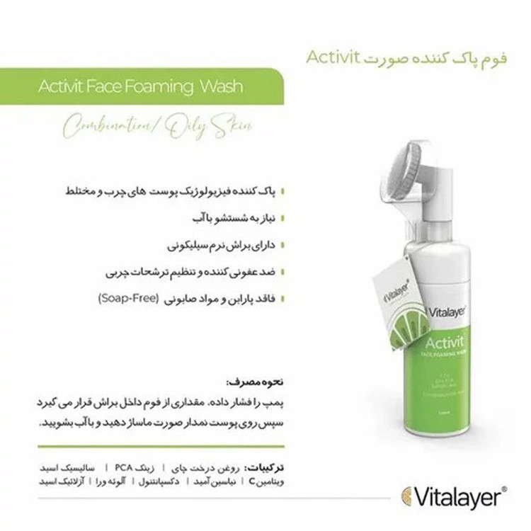 فوم شستشو صورت ویتالیر مدل Activit مناسب پوست های مختلط و چرب حجم 150 میلی لیتر