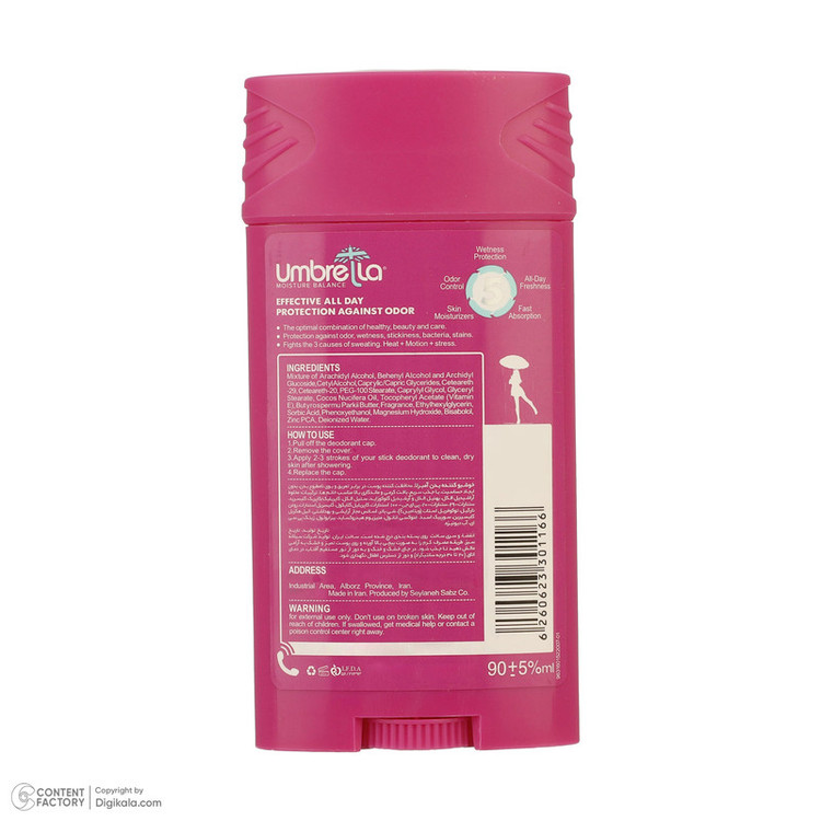 این محصول با ترکیبات منحصربهفردی مانند روغن نارگیل، شی باتر، منیزیم و زینک، علاوه بر جلوگیری از تعریق و بوی نامطبوع آن، به نرمی و لطافت پوست نیز کمک میکند. روغن نارگیل و شی باتر، از جمله مرطوبکنندههای طبیعی هستند که به حفظ رطوبت پوست کمک میکنند. منیزیم و زینک نیز از جمله مواد معدنی ضروری برای پوست هستند که به تقویت آن و جلوگیری از خشکی کمک میکنند. استیک زنانه کیس میس سرخ آبی آمبرلا با فرمولاسیون سبک و جذب سریع، احساس چسبندگی و سنگینی روی پوست ایجاد نمیکند. این محصول همچنین به راحتی قابل استفاده است و نیازی به اسپری کردن ندارد.