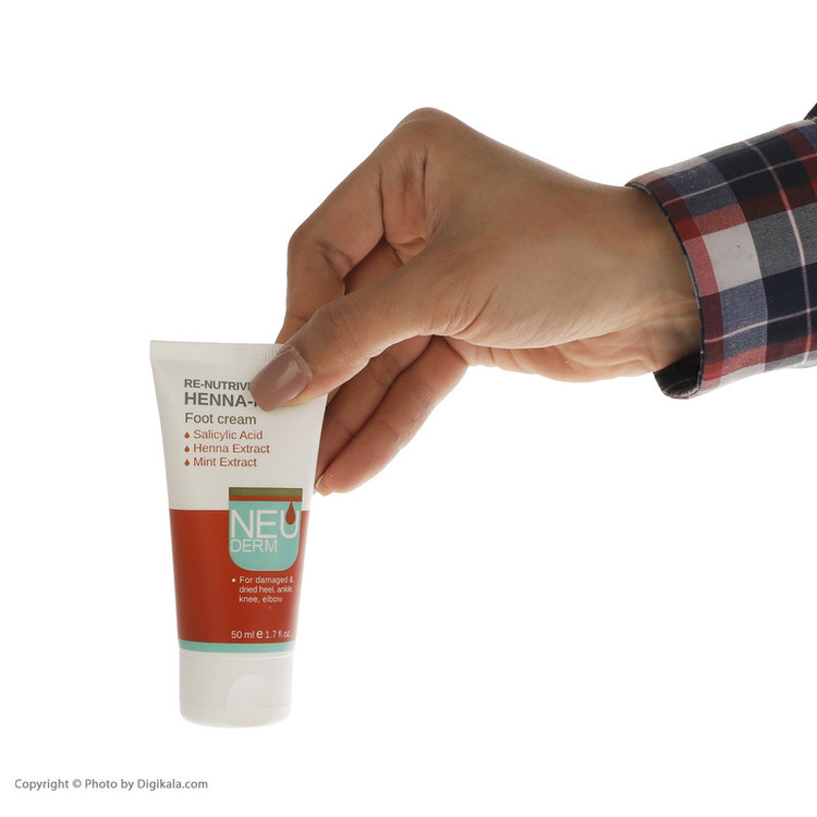 کرم «Henna-Mint» از محصولات «Neuderm»(نئودرم)، راه حل بسیار ساده و آسانی برای رفع ترک پا است. ترکیب اصلی این کرم را عصارههای حنا و نعناع تشکیل میدهند. حنا، بسیار موثر در نرم شدن و آبرسانی به پوست است؛ ترکیب آن با نعناع، تاثیری فوقالعاده در حفظ رطوبت و لطافت پوست دارد. عملکرد کلی این کرم، ترمیم و تغذیهی پوست توسط ترکیب مغذی از موم عسل، شی باتر، گلیسرین و اسید سالیسیلات است. این کرم، پوست نواحی خشک مانند پاشنه و کف پا را بازسازی کرده و اثر خوبی در نرمی و صاف شدن پوست دارد. همچنین بسیار مناسب جهت برطرف کردن خشکی نواحی مانند زانو، آرنج و قوزک پا که در معرض سایشاند، است.تماس زیاد و مداوم کف پا و بخصوص پاشنه، با سطوح، خاک و آلودگی، پوست این ناحیه را ضخیمتر و خشک میکند؛ که نتیجهی آن ایجاد ترک و زبری پوست است. این ترک در ابتدا میتواند هنگام تماس پا با سطوح پارچهای مانند جوراب و لباس حس شود اما به مرور با تشدید آن، میتواند دردناک و آزار دهندهتر شود. کرم حنا-نعناع نئودرم در حجم 50 میلی لیتر، درمانی ساده، در دسترس و کم هزینه برای برطرف کردن خشکی و ترکهای پوست پا است.