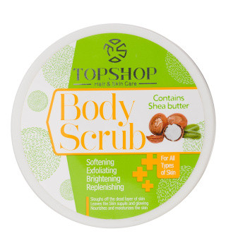 برای این که پوست بدن شادابی و تازگی خود را حفظ کند، لازم است که سلولهای مرده از لایههای رویی برداشته شوند و سلولهای جدید و شاداب در سطح پوست باقی بمانند.یکی از روشهای لایه برداری پوست استفاده از اسکراب بدن است.در اصل اسکراب لایه بردار و ترکیبی از مواد مختلف با دانههای ریز یا گرانولهایی است که کمی ساختار آن را زبرتر میکند تا بتواند اضافات پوستی را به راحتی از روی پوست جدا کند.روند لایه برداری اسکراب بدن تاپ شاپ حاوی روغن شی باتر با بافت ژلی که دارد برخلاف خیلی از روشهای لایه برداری پوست دیگر تهاجمی نیست، سوزش ندارد و حتی پس از شستشو باعث لطیف شدن و نرمی بیشتر پوست میشوند. ژل اسکراب بدن تاپ شاپ حاوی روغن شی باتر محصولی بی نظیر است که با ترکیب دانه های شکر و نمک بافتی ملایم و موثری دارد که به آرامی لایه مرده را از سطح پوست پاک کرده و باعث از بین رفتن آلودگی ها و چربی های اضافی پوست از داخل منافذ پوست شده و ضمن جلوگیری از بروز آکنه و جوش باعث رطوبت رسانی عمیق و قوی به پوست می شود. همچنین می تواند در کاهش موهای زیر پوستی و کاهش سلولیت بدن تاثیرگذار باشد. این اسکراب دارای فرمولاسیون پیشرفته حاوی روغن های شی باتر، نارگیل و آواکادو بوده و پوست را عمیقا تغذیه نموده، به آن نرمی و لطافت می بخشد همچنین جهت آبرسانی و رفع خشکی پوست در این محصول عصاره آلوئه ورا استفاده شده است.سلولهای مرده پوست، چربیهای طبیعی بدن، استفاده از لوازم آرایشی و گرد و غبار و ذرات آلوده در هوا میتوانند منافذ پوست شما را ببندند. با استفاده از ژل اسکراب بدن تاپ شاپ حاوی روغن شی باتر که همانند لایه بردارملایم پوست عمل می کند، میتوانید همه این ذرات را پاک کنید و باعث شوید درمانهای پوستی و مواد مراقبت از پوست که استفاده می کنید اثربخشی بیشتر داشته و پوست شما روشنتر و شفافتر به نظررسد و احساس تمیزی بیشتری داشته باشید. با استفاده دورهای و منظم این محصول جای جوش، آکنه و خشکی مزمن پوست بدن شما برطرف میشود.شما می توانید بعنوان محصولات مکمل از شامپو بدن حاوی روغن آرگان و لوسیون بدن حاوی روغن شی باتر استفاده کنید. با استفاده از این محصول علاوه بر دادن حس شادابی به پوست خود تجربه ی کامل رایحه ی دلپذیر هلو را نیز تجربه کنید.