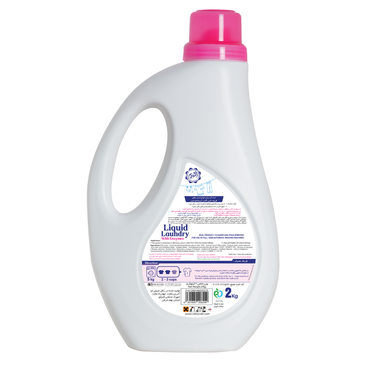 مایع لباسشویی رافونه با حجم ۲ لیتر، قدرت پاک کنندگی بالایی دارد و با فرمول ویژه خود، شامل ۴ سورفکتنت کارآمد و ۶ آنزیم فعال، به راحتی انواع لکههای سرسخت را از بین میبرد. این محصول قادر است حداقل ۳۰ نوع لکه مختلف را به سرعت و به طور مؤثر پاک کند. با استفاده از این مایع، لباسهای رنگی درخشانتر و لباسهای سفید درخشش خود را حفظ میکنند.