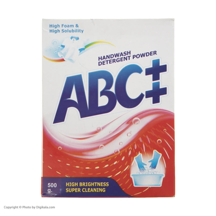 پودر دستی لباسشویی آ ب ث با حجم 500 میلی لیتر با قابلیت لکه زدایی و چربی زدایی و همچنین سفید کنندگی برای شستشوی انواع لباس می باشد. این پودر قابل استفاده در ماشین های نیمه اتوماتیک نیز می باشد همچنین می توان از آن برای شستن ظورف، کاشی و سرامیک نیز استفاده کرد.