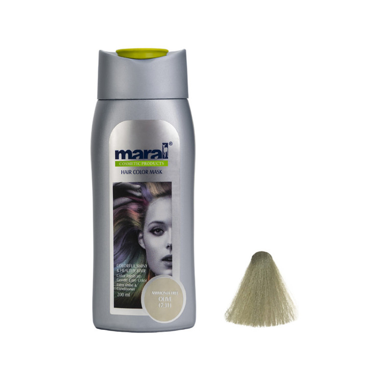 شامپو رنگساژ مارال شماره 7.31 رنگ الیو (ماسک رنگ مو) فرمولاسیون منحصر به فرد و بدون آمونیاک است. این محصول حاوی نرم کننده و مرطوب کننده نیز است. و اثرات جانبی رنگ موهای دائمی همانند خشکی و آسیب مو، سوزش چشم و مشکلات تنفسی را نیز به همراه ندارد. دوام رنگ و حفظ لطافت و نرمی مو از ویژگی های دیگر این محصول است. مقدار مناسبی از شامپو را بر روی موی دکلره شده استفاده کرده و موها را کاملا آغشته نمایید و پس از 10 دقیقه بطور کامل آب بکشید.