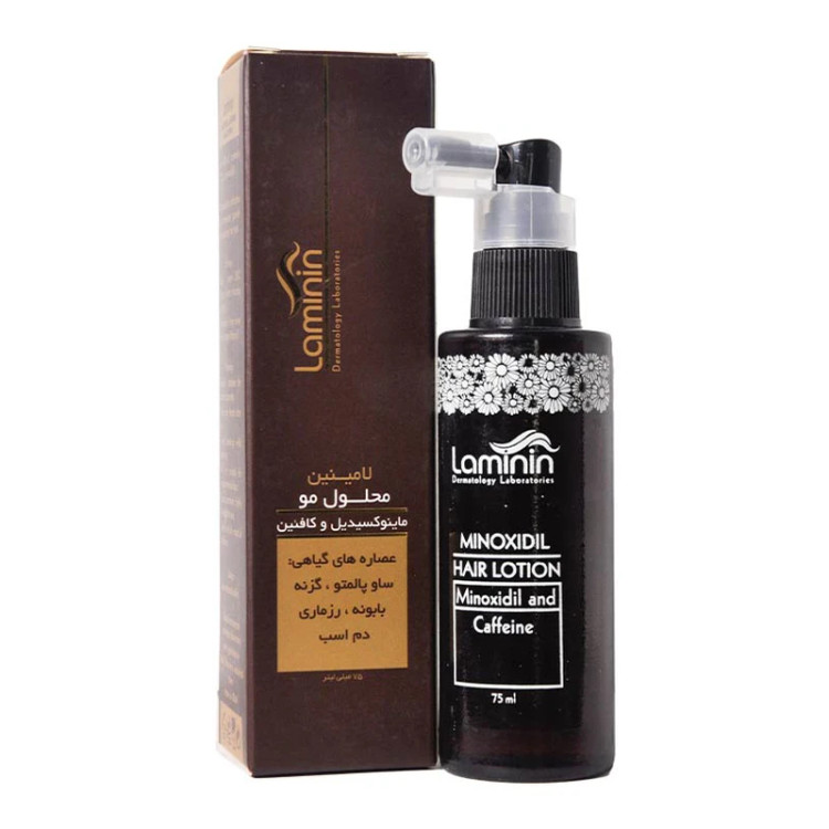 محلول تقویت کننده مو لامینین مدل ماینوکسیدیل و کافئین حجم 75 میلی لیتر