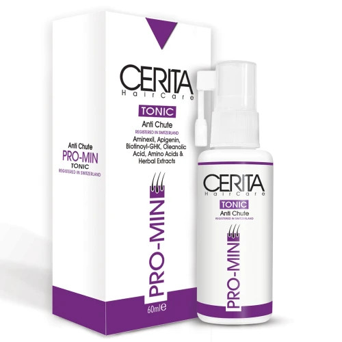 تونیک تقویت کننده مو سریتا مدل Pro-Min، دارای یک فرمولاسیون منحصر به فردی است که نه تنها از ریزش مو جلوگیری می کند، بلکه باعث تحریک رویش مجدد مو هم می شود و ضخامت تارهای آسیب دیده مو را هم بیشتر می کند. یکی از ترکیبات موجود در این تونیک آمینکسیل است. آمینکسیل فرم جدید ماینوکسیدیل می باشد ماینوکسیدیل بر روی چرخه رشد مو اثر می گذارد و باعث طولانی تر کردن سیکل رشد مو (افزایش مدت زمان آناژن) می شود. ماینوکسیدیل همچنین با باز کردن کانال های پتاسیمی حساس به آدنوزین تری فسفات، باعث شل شدن عضلات صاف عروق و افزایش جریان خون در این ناحیه می شود که نتیجه آن سهولت تامین مواد غذایی و انرژی لازم برای سلول های فولیکول مو می باشد. ماینوکسیدیل همانطور که گفته شد، باعث افزایش جریان خون در پوست سر می شود. افزایش خون رسانی به مو نقش مهمی در افزایش رشد موهای سر دارد. این امر باعث پاکسازی هورمون مضر DHT از اطراف فولیکول های مو شده در نتیجه ریزش مو ارثی یا آندروژنتیک را مهار می کند. اولئانولیک اسید موجود در این محصول با مهار آنزیم ۵ آلفا ردوکتاز اثرات مخرب دی هیدروتستوسترون را از بین می برد و پپتید بیوتینیل هم باعث افزایش متابولیسم سلول های فولیکول مو می شود. یکی دیگر مواد موثر موجود در این تونیک سدیم پی سی ای است که با رطوبت رسانی مناسب به مو و پوست سر، خشکی مو را از بین می برد. آلوئه ورا هم در فرمولاسیون این محصول وجود دارد که یک ماده رطوبت رسان است و با رفع خشکی پوست و مو سر باعث نرمی و لطافت مو می شود.