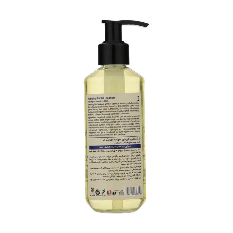 ژل شستوشوی صورت مورینگا امو مدل 02 مناسب برای پوست خشک و حساس حجم 200 میلیلیتر