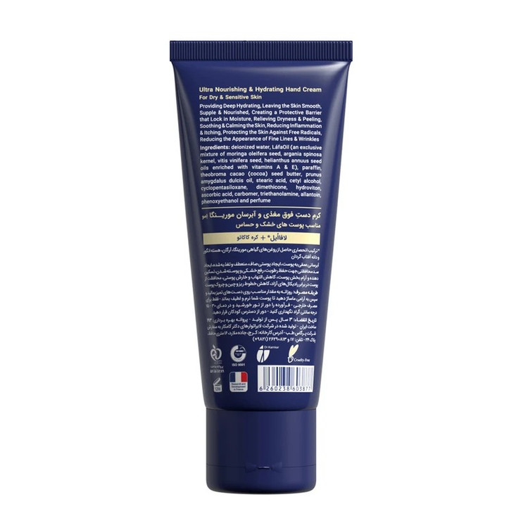 کرم دست فوق مغذی و آبرسان مورینگا اِمو مدل 2 پوست خشک و حساس تیوبی 75 میلیلیتر