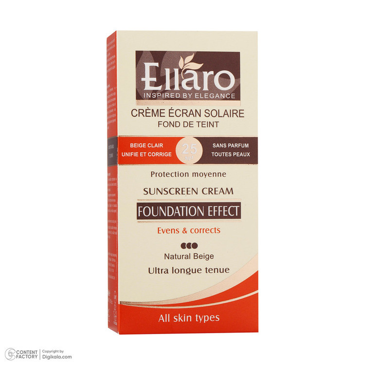 کرم ضد آفتاب رنگی الارو مدل SPF25 محافظ UVA ،UVB، مناسب انواع پوست حجم 40 میلیلیتر