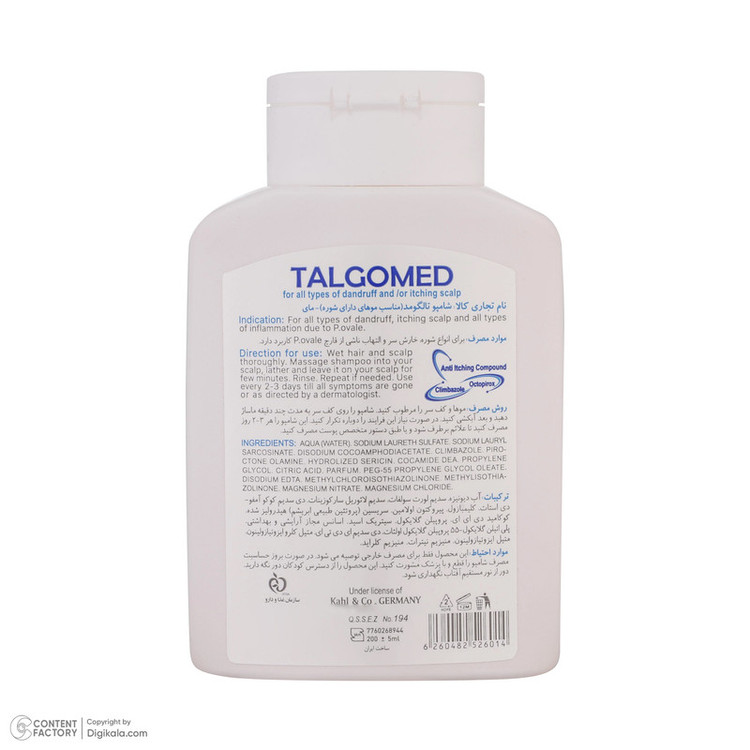 شامپو ضد شوره مو مای مدل Talgomed مخصوص انواع موها حجم 200 میلی لیتر