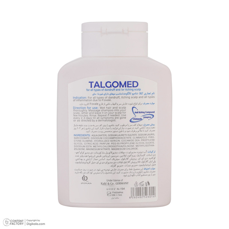 شامپو ضد شوره مو مای مدل Talgomed مخصوص انواع موها حجم 200 میلی لیتر
