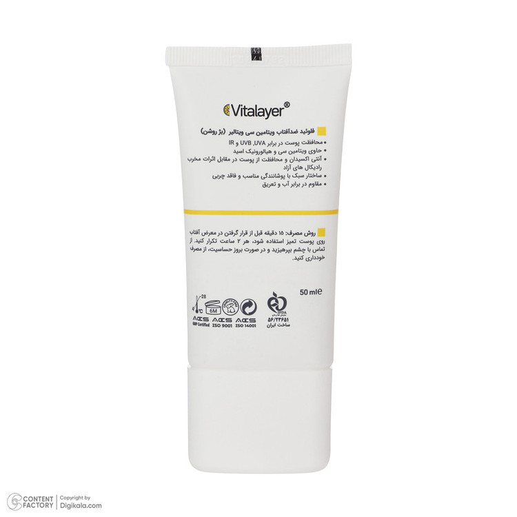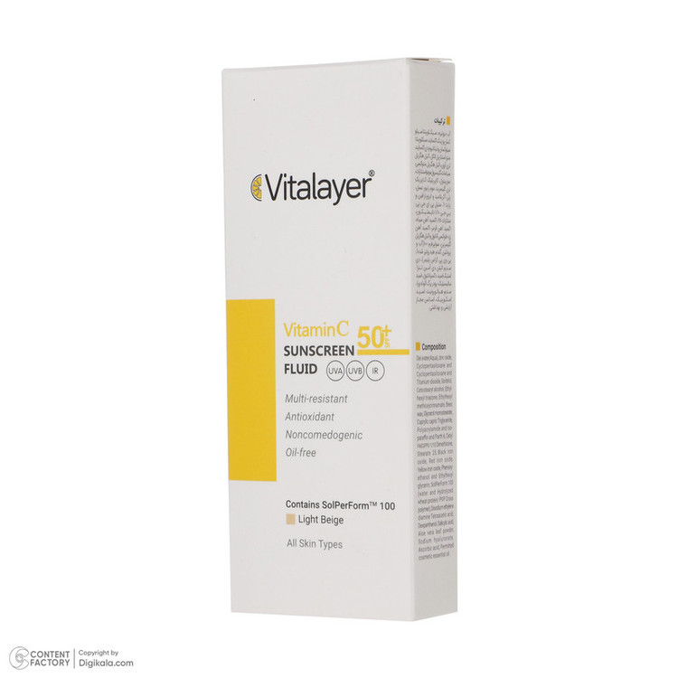 فلوئید ضدآفتاب رنگی ویتالیر SPF 50 مدل Vitamin C مناسب انواع پوست حجم 50 میلی لیتر