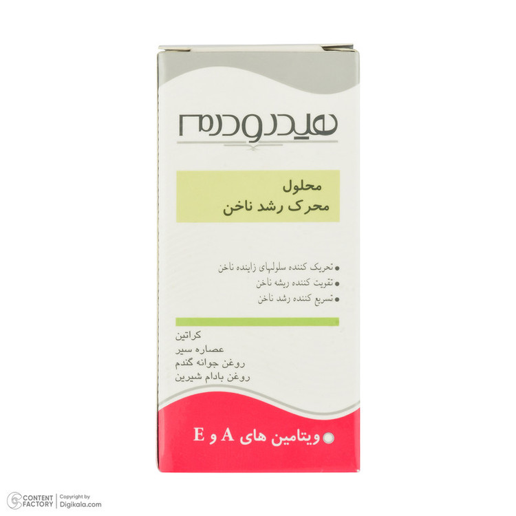 زیبایی ناخنها تاثیر زیادی در زیباتر دیده شدن دستها دارند. برای جلوهی بهتر ناخنها نیازی به مانیکور ماهانه و پرداخت هزینهی بالای آن در آرایشگاهها نیست و میتوان با محصولات با کیفیتی که برای این منظور تولید شدهاند به مراقبت از ناخنها در خانه پرداخت. ناخنها بر اثر مجاورت با مواد شوینده، هوای سرد و عوامل دیگر سطح صاف خود را از دست میدهند که به محض پیش آمدن این مشکل درصدد رفع آن بر میآییم اما کمتر به رشد ناخن توجه نشان میدهیم و تنها زمانیکه ناخن رشد لازم را نکرده بیشتر بهچشم میآید و بهدنبال راهی برای نمایش بهتر آن هستیم. برای رشد هرچه بهتر و سریعتر ناخنها، شرکت هیدرودرم (Hydroderm) که در زمینهی محصولات بهداشتی بسیار موفق عمل کرده محلول محرک رشد ناخن را تولید کرده است که علاوه بر تقویت ریشهی ناخن برای رشدی سریع، همراه با ویتامین های A و E نیز هست. این محلول 8 میلی لیتری حاوی کمپلکس تقویت کننده و محرک رشد متیونین، روغن جوانه گندم، روغن بادام شیرین و دسیل الیوات که به رشد سریع ناخن کمک میکند.