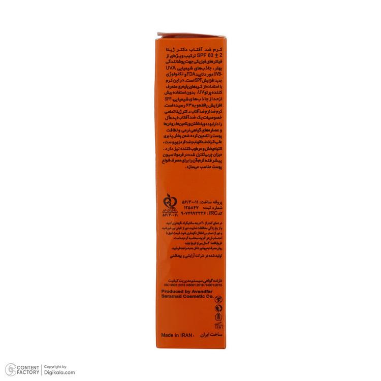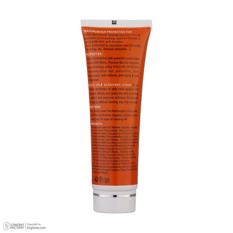 کرم ضد آفتاب دکتر ژیلا با فرمولاسیون منحصر به فرد خود، ترکیب ویژه ای از فیلترهای فیزیکی با تکنولوژی نانو جهت پوشانندگی بهتر، جاذب های شیمیایی UVA-UVB مورد تأیید FDA و تکنولوژی مدرن افزایش SPF می باشد. در این کرم با استفاده از کره های پلیمری منحرف کننده پرتوهای UV و کمپلکس گیاهی پونگامول SPF افزایش یافته و به 63 رسیده است. کرم ضد آفتاب دکتر ژیلا تمام خصوصیات یک ضد آفتاب ایده آل را دارا بوده و با داشتن ویتامین ها، روغن ها و عصاره های گیاهی نرمی و لطافت پوست را تضمین کرده، ضمن پخش پذیری عالی، اثرات ضد التهاب و قرمزی پوست، التیام بخش و مرطوب کننده و کاهش دهنده تعریق دارد. در ضمن میزان چربی کنترل شده در فرمولاسیون پیشرفته کرم، آن را برای مصرف انواع پوست مناسب می سازد.