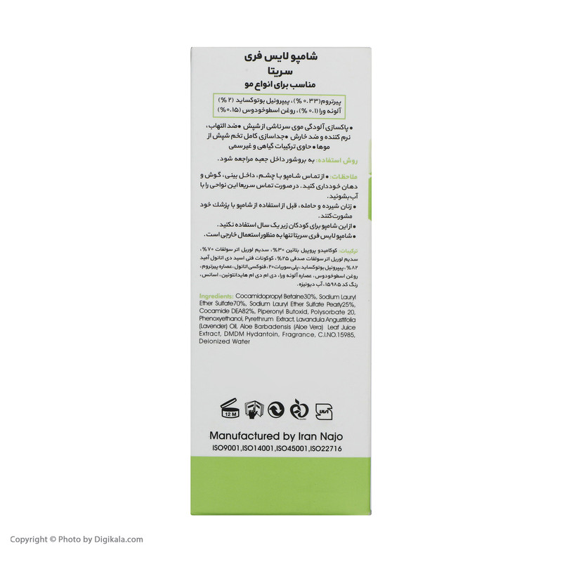 شامپو ضد شپش سریتا مدل لایس فری حجم 95 میلی لیتر