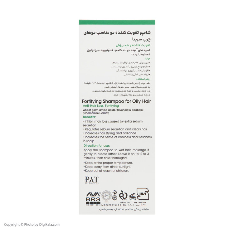 شامپو تقویت کننده و ضد ریزش مو های چرب سریتا مدل Fortifying حجم 200 میلی لیتر