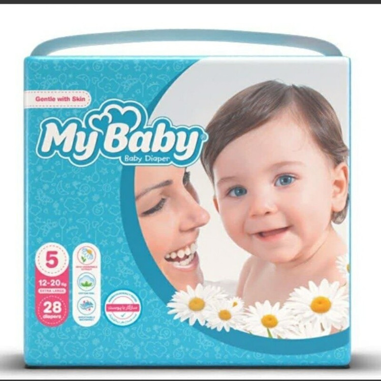 پوشک چسبی مای بیبی آبی سری مهربان با پوست سایز 5 بسته 28 عددی