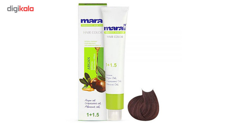 رنگ مو مارال رنگ مو دائمی است که قادر است رنگ موجود موها رو تغییر داده، تیره تر یا روشن تر کند. قدرت پوشش رنگ مو مارال برای موهای خاکستری عالی بوده و در هر شرایطی کاملا پایدار است. رنگ مو مارال حاوی روغن آرگان، روغن هسته ی انگور، روغن بادام، ویتامین، نرم کننده و حالت دهنده ی مو می باشد که باعث درخشندگی مو شده و از خشک شدن و شکنندگی مو جلوگیری می کند. حجم: ۱۰۰ میل نسبت درصد ترکیب ۱ به ۱/۵ برای رنگ مو های معمولی اکسیدان ۶ درصد و رنگ موهای روشن کننده ۱ به ۲ اکسیدان ۹ درصد مارال می باشد.