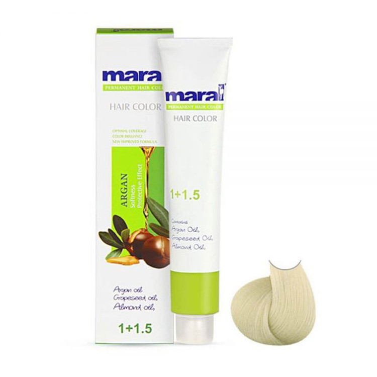رنگ مو مارال رنگ مو دائمی است که قادر است رنگ موجود موها رو تغییر داده، تیره تر یا روشن تر کند. قدرت پوشش رنگ مو مارال برای موهای خاکستری عالی بوده و در هر شرایطی کاملا پایدار است. رنگ مو مارال حاوی روغن آرگان، روغن هسته ی انگور، روغن بادام، ویتامین، نرم کننده و حالت دهنده ی مو می باشد که باعث درخشندگی مو شده و از خشک شدن و شکنندگی مو جلوگیری می کند. حجم: ۱۰۰ میل نسبت درصد ترکیب ۱ به ۱/۵ برای رنگ مو های معمولی اکسیدان ۶ درصد و رنگ موهای روشن کننده ۱ به ۲ اکسیدان ۹ درصد مارال می باشد.