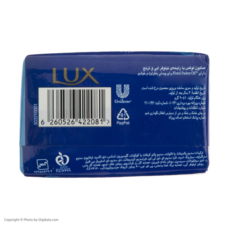 همگی این محصولات سازگار با PH طبیعی پوست و حاوی گلیسیرین برای نرمی و حفظ رطوبت آن هستند. صابونهای قالبی Lux با دو تنوع حجم 90 و 125 گرمی و در رایحههای منحصربه فرد و ماندگار تولید میشوند. لطافت و خوشبویی ماندگار پوست را پس از اولین بار استفاده حس میکنید.