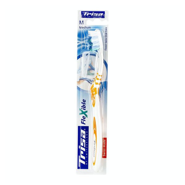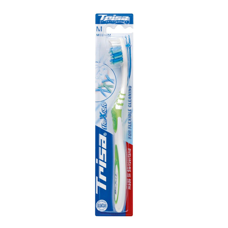 مسواک تریزا مدل فلکسیبل، دارای برسی با الیاف متوسط و کاملاً ته گرد میباشد. الیاف این مسواک به صورت ضربدری قرار گرفتهاند، که این نوع چیدمان باعث پاکسازی بهتر سطوح دندانها و فواصل بین دندانی میشود و حتی دندانهای عقبی که اغلب در دسترس نیستند را نیز کاملاً تمیز و پاکسازی میکند. الیاف ته گرد برس، سطوح دندانها را به صورت ملایم پاکسازی کرده و از مینای دندان و بافت لثه در هنگام مسواک زدن محافظت میکند. دسته این مسواک به صورت ارگونومیک طراحی شده است که به راحتی داخل دست قرار میگیرد و در هنگام مسواک زدن در دست سُر نمیخورد. گردن این مسواک نیز انعطاف پذیر میباشد که باعث سهولت در هنگام استفاده میشود. همچنین این مسواک دارای در پوش میباشد که از تجمع میکروبها روی برس و ایجاد آلودگی جلوگیری میکند.