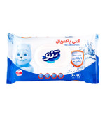 دستمال مرطوب آنتی باکتریال بدون عطر 60عددی تنو