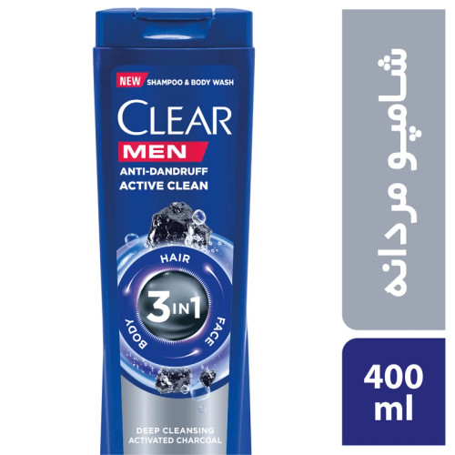 شامپو ضد شوره کلییر آقایان حاوی زغال 3x1 حجم 400 میلی لیترناموجود